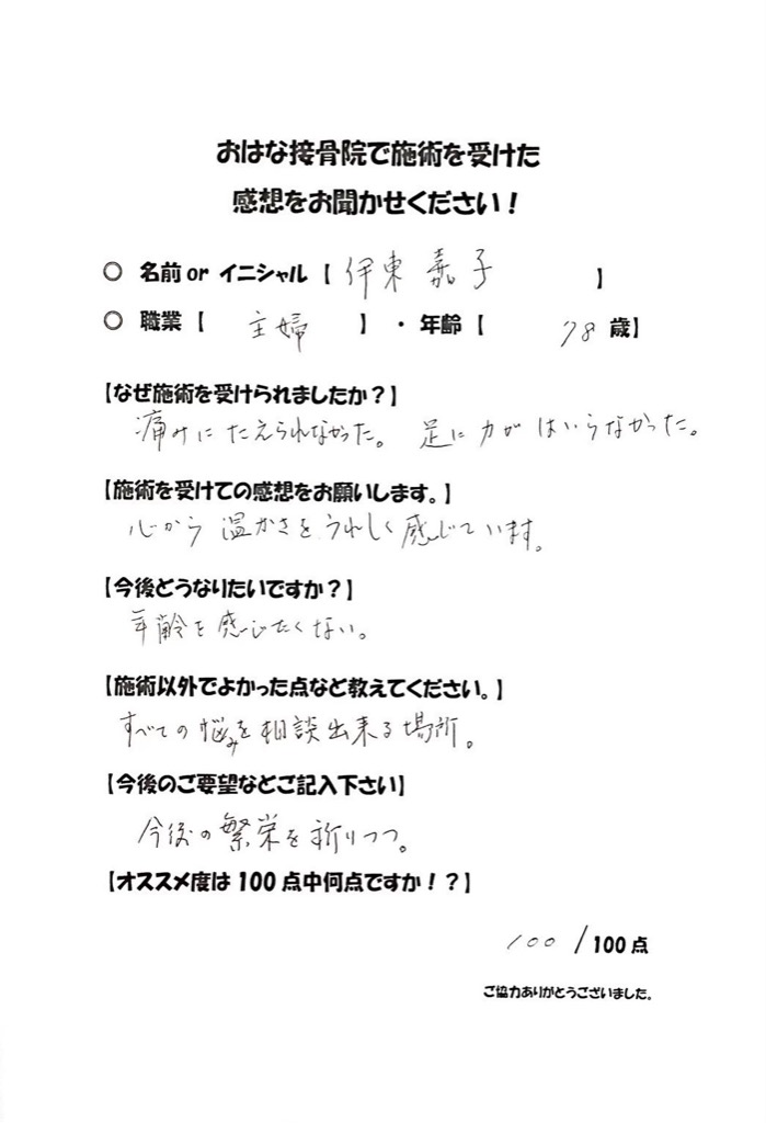 【 年齢 】78歳【 職業 】主婦